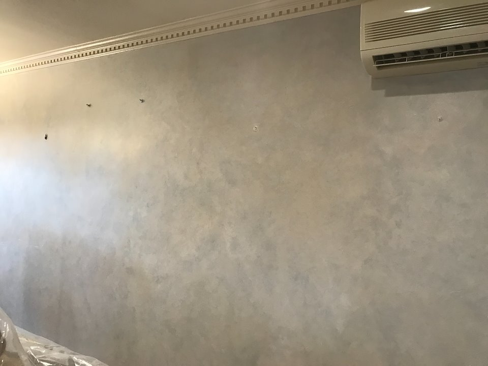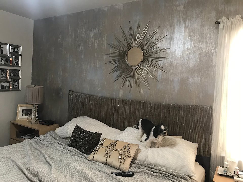 Bedroom–Strie painting technique using multiple layers and metallic finishes