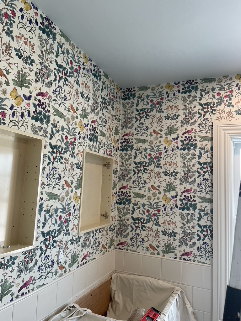 Wallpaper--Master Bath, historic home, Islesboro, …