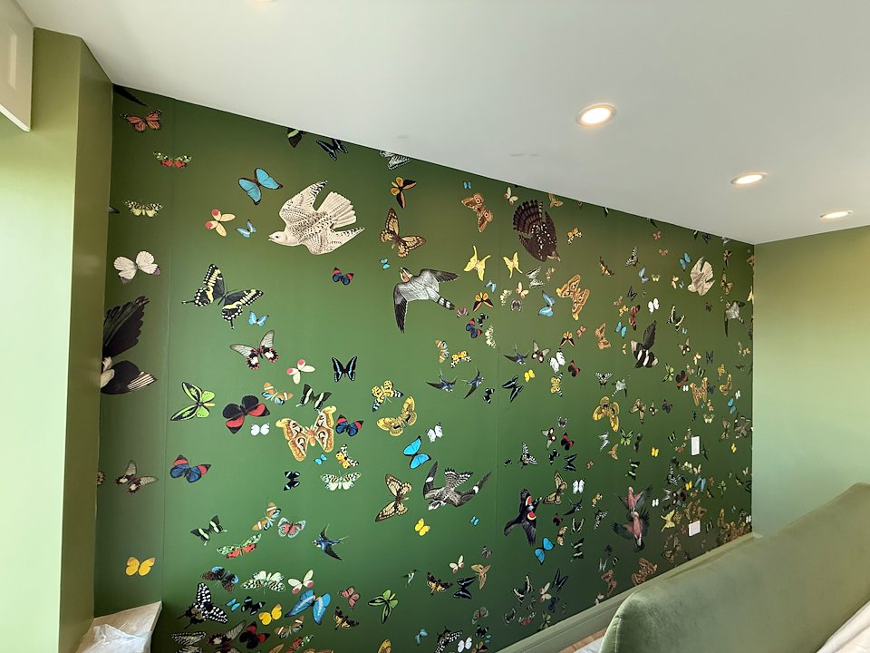 Reworked wallpaper for client. Adjusted design placement, improved seam cutting so substrate is not visible at seams.